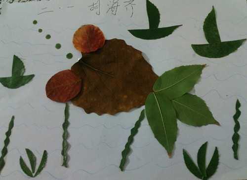 在活动中,低年级的少先队员热情尤其高涨,每个课间都能看到三三两两的少先队员弯腰捡拾的场景。老师们借助这一有利时机,一方面教育少先队员热爱学校,热爱劳动,另一方面,利用捡到的树叶组织少先队员开展了一次制作叶画活动,用自己的一双巧手,把这缤纷的秋天留住。大家充分发挥自己的想象力和创造力,把树叶摆成各种造型的图案,有生动形象的小鱼、花朵和海底世界,并把一幅幅生动的作品上传到班级群相册,在交流互动中感受着秋天带来的无限乐趣。