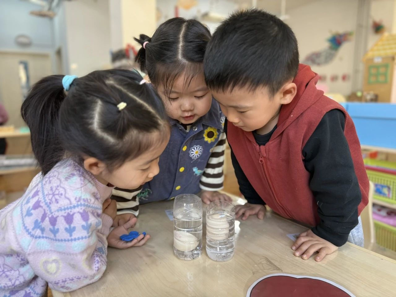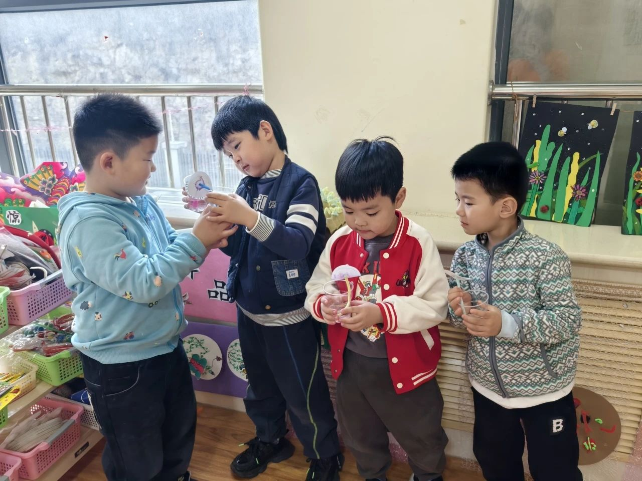 乐•春分 为了探索春分节气的无限乐趣,孩子们拿起画笔,在透明塑料袋上自由挥洒着创意。在春风的吹拂下,有趣的塑料袋变废为宝成为“风筝”,孩子们拉着绳子,迎着风奔跑,“风筝”缓缓升起,越飞越高。 戏•春分 春分已至,春风和煦,孩子们在一系列有趣的游戏中,感受大自然的美好,在欢笑中体验春天的魅力! 悬浮鸡蛋 春分有立蛋的习俗。基于这一传统习俗,孩子们设计了一场“悬浮鸡蛋小游戏”,看着原本沉在水底的鸡蛋悬浮在水中,既不下沉也不上浮,不禁感叹这种神奇的景象。