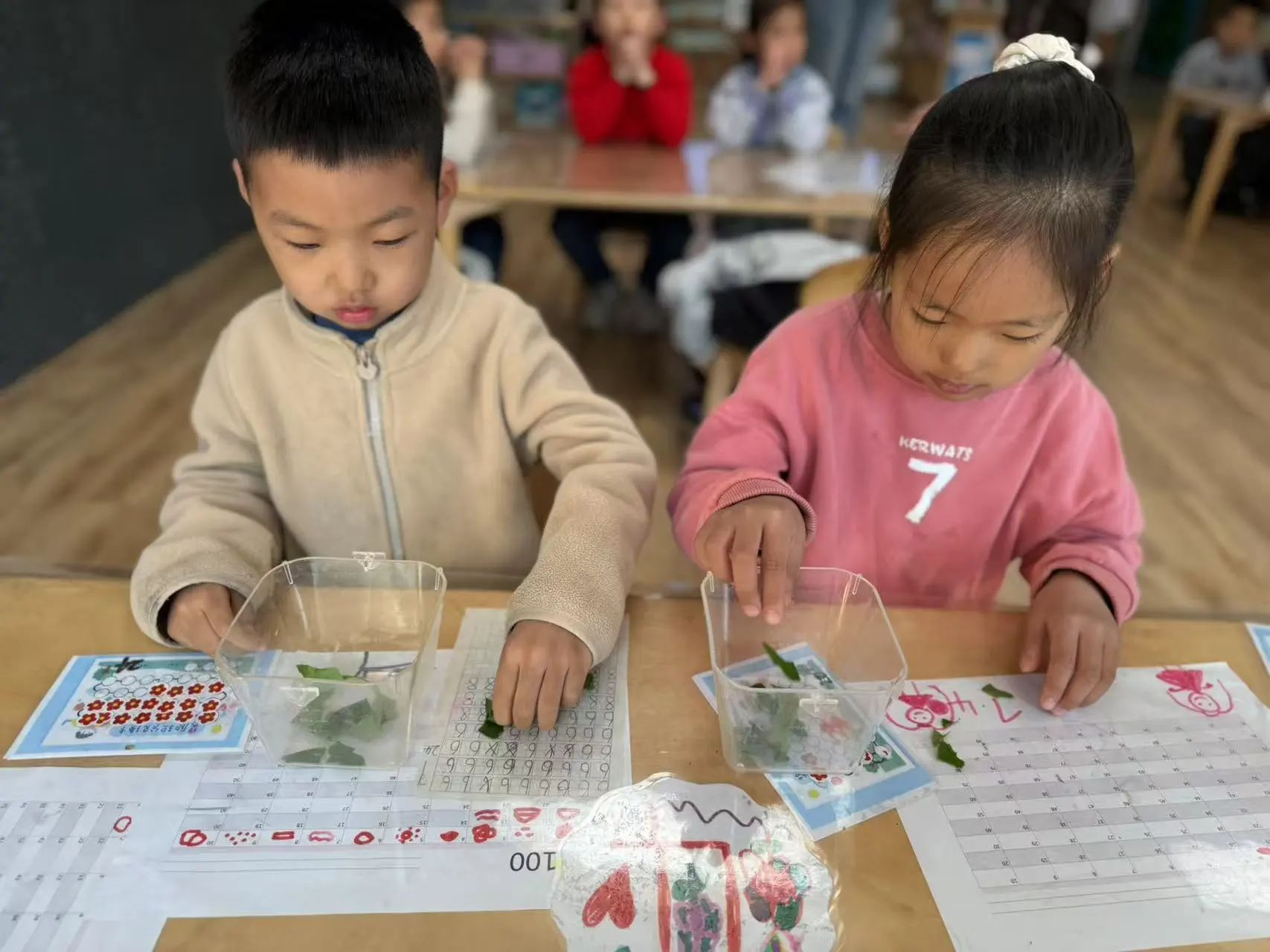 “草色青青迎客步,柳丝袅袅拂人衣。”春分节气之际,阳光正好,正是大自然展现其勃勃生机的时候,一场别开生面的“提取叶绿素”游戏在教室里拉开了序幕。孩子们小心翼翼地研磨着叶子,随后把捣碎的叶子放到杯子里,用木棍搅一搅,不一会儿,每个人都提取出了自己的叶绿素提取液,兴奋地比较着彼此的成果,在欢笑中游戏。