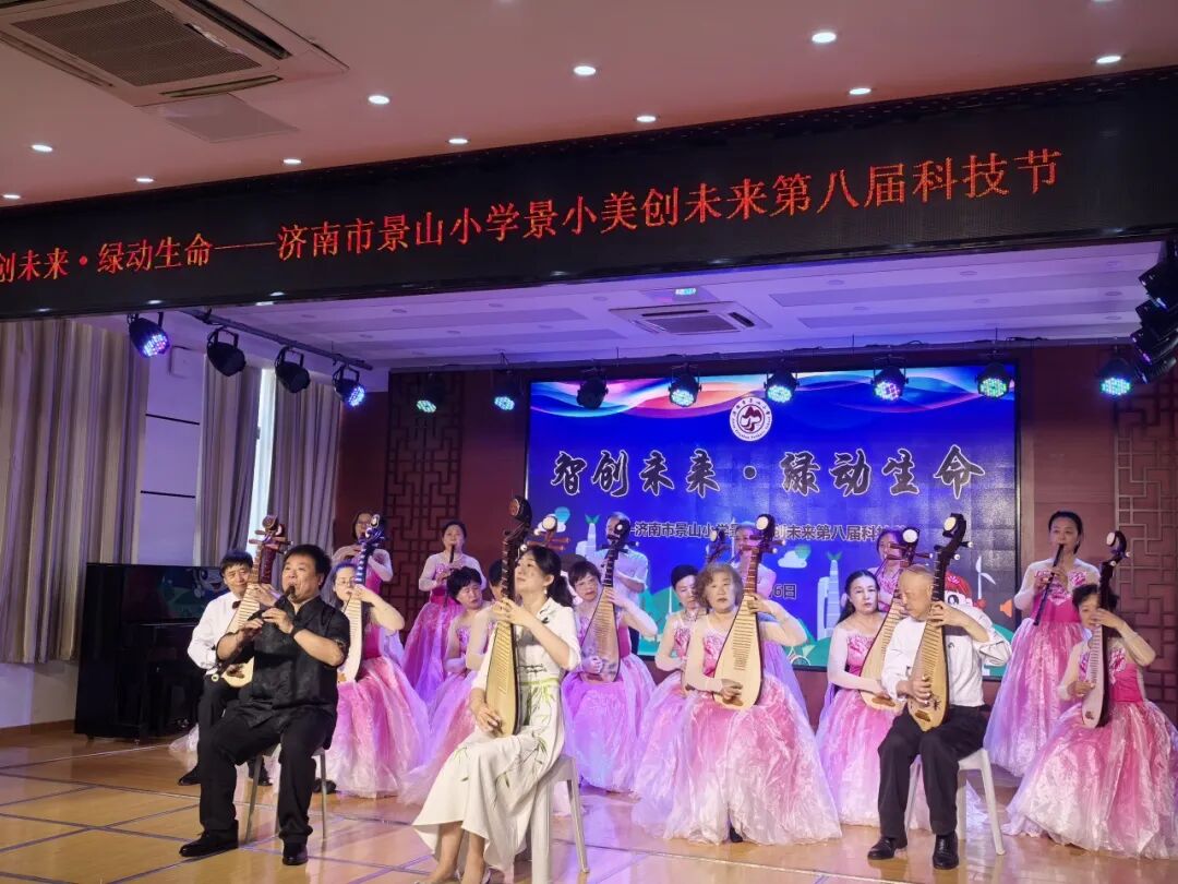 山东老年大学燕山校区艺术团带来手风琴联奏《花儿与少年》《西班牙斗牛曲》,琵琶与箫合奏《茉莉花》,以传统乐器演绎科技节主题,展现代际文化传承的魅力。