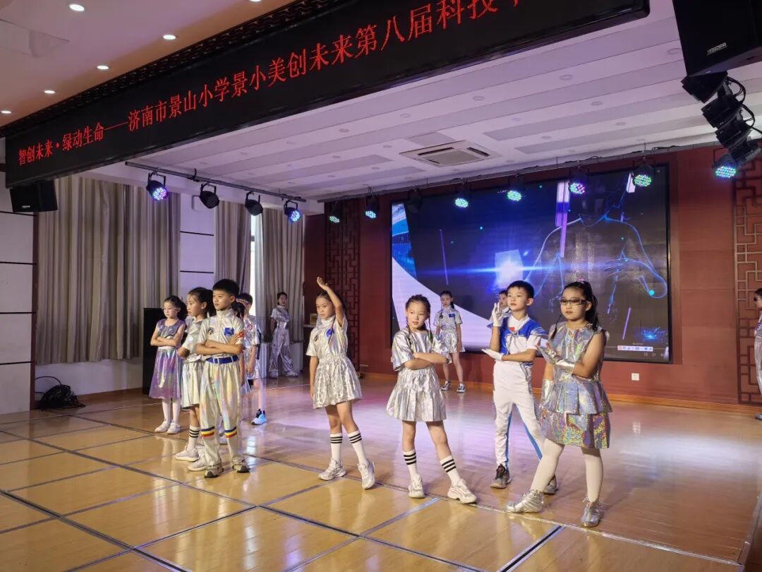 景小美化身“未来科学家”,以环保材料打造“科学服装”,在走秀中融入手势舞《科学点亮未来》,诠释“科技+时尚”的无限可能。