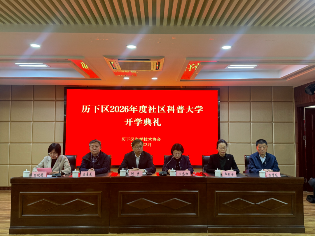3月11日,历下区社区科普大学2026年度开学典礼在解放路街道历山路社区举行。区科协主席何乐、副主席王志红,区科协委员、济南健康传播协会会长王星光,济南营养学会副理事长牟利宁,济南健康传播协会副会长吕铮参加活动。解放路街道党工委副书记杨晓媛主持活动。