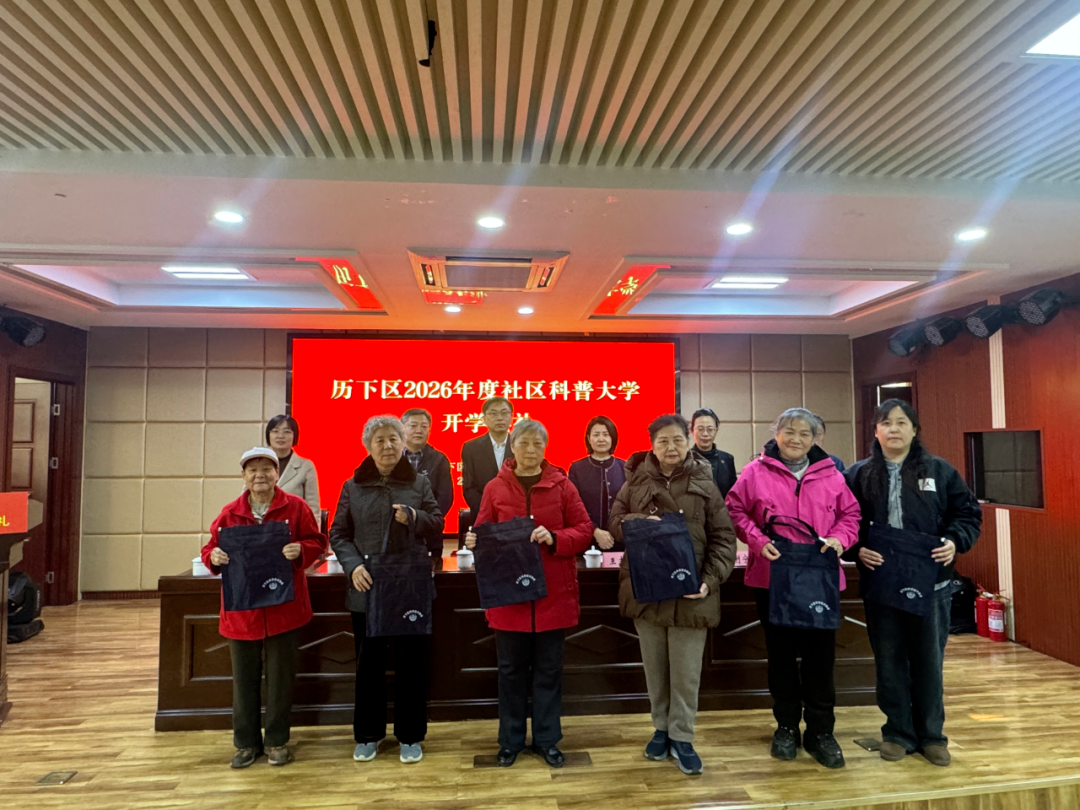 开学典礼上,正式宣读并下发《关于2026年度社区科普大学正式开学的通知》,解放路街道历山路社区、文化东路街道和平路社区科普大学负责人做了交流发言,并向科普大学学员代表发放了学习用品。