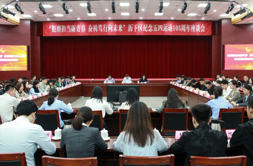 2024年4月29日上午,历下区召开“挺膺担当砺青春 奋楫笃行向未来”纪念五四运动105周年座谈会,区委副书记吴剑、团市委副书记许梅出席会议并讲话。