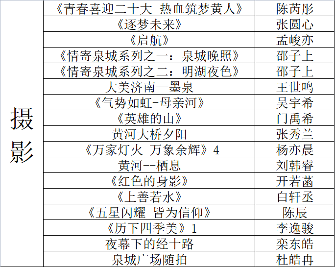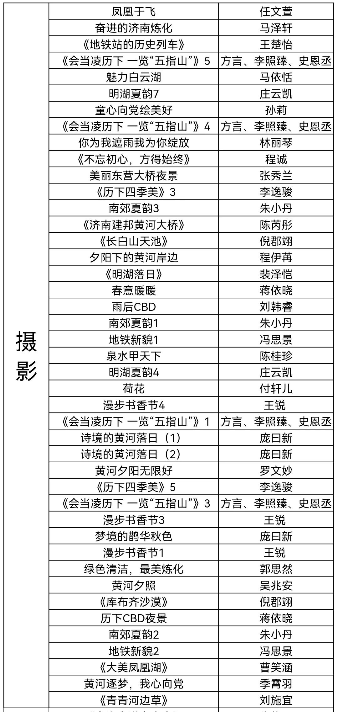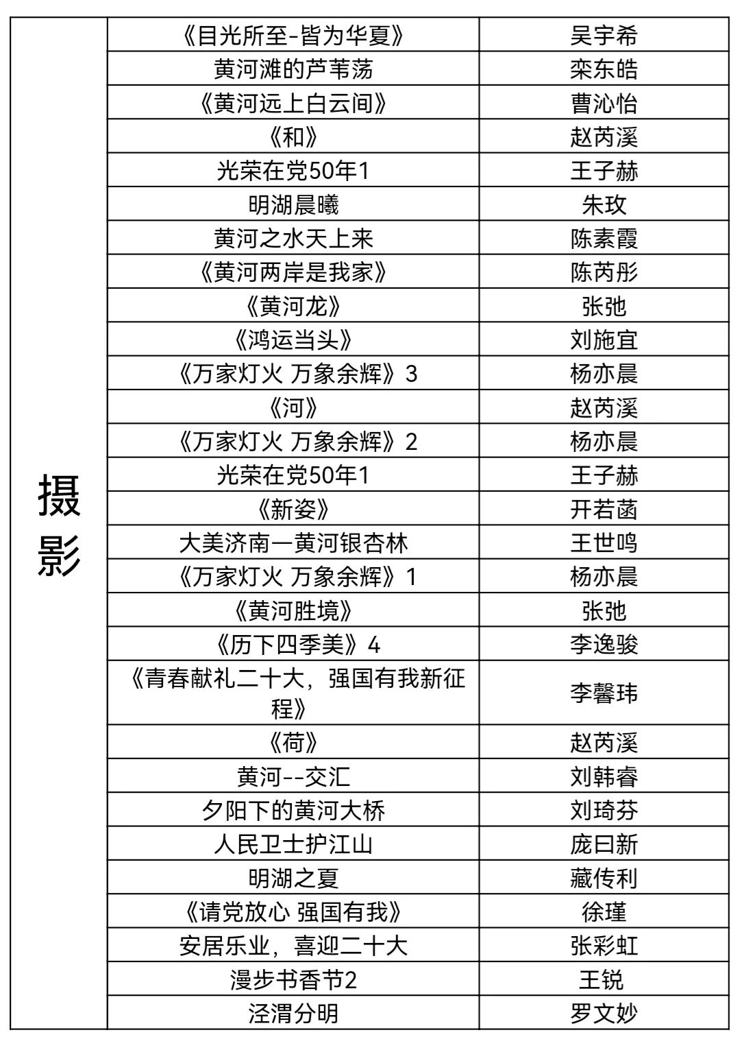 前期,为庆祝党的二十大胜利召开,历下区关工委、共青团历下区委、历下区教体局联合举办了摄影、诗词散文朗诵征集活动,共收到来自37所中小学、3所幼儿园及1家机关单位的摄影作品119件,诗词咏诵作品110件。 活动主办方邀请了专业人士组成评审组对征集到的作品从内容主题、艺术表达、创意性、技术性、整体性等方面进行了综合评价,共评出一等奖作品36件(摄影17,朗诵19);二等奖作品53件(摄影29,朗诵24);三等奖作品92件(摄影43,朗诵49);优秀组织奖19名(名单附后)。希望获奖的青少年、团队、优秀组织单位能够积极学习宣传贯彻党的二十大精神,筑牢听党话、跟党走的思想根基,为国际化一流中心城区建设贡献青春力量。