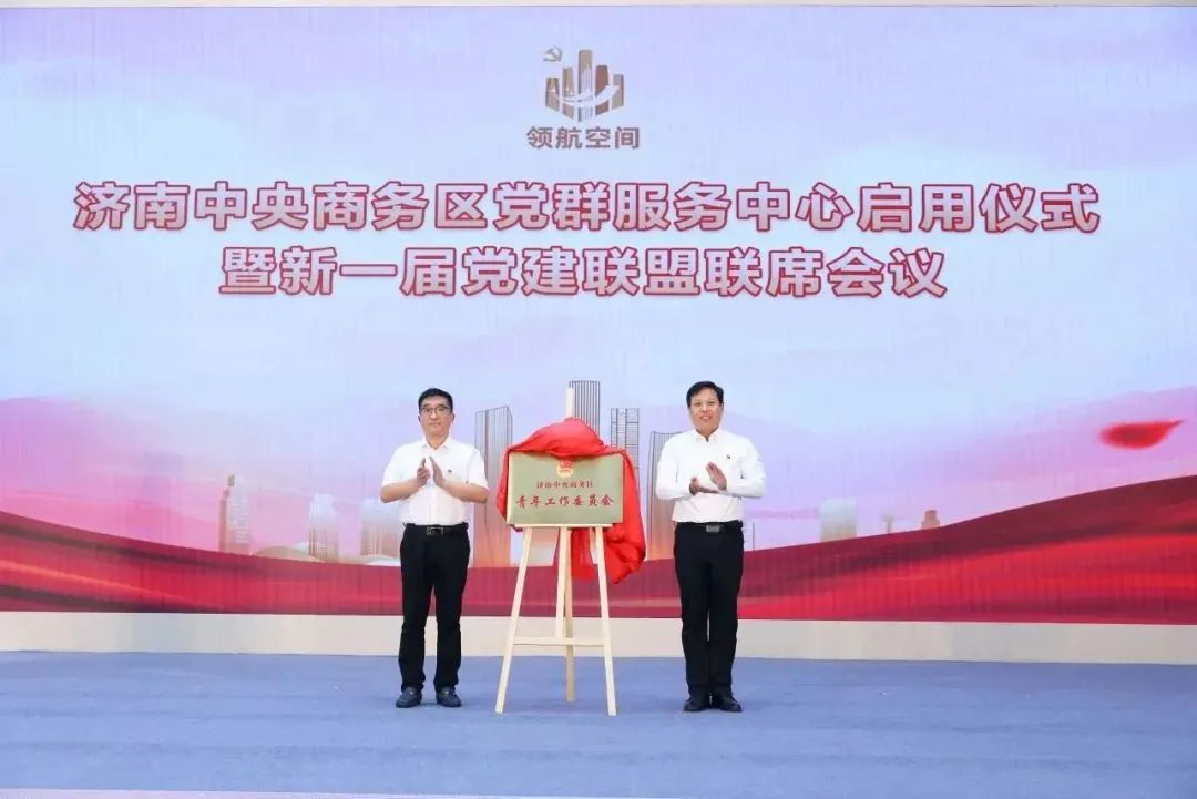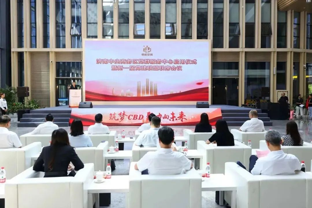 8月31日上午,“筑梦CBD·聚力向未来”济南中央商务区党群服务中心启用仪式暨新一届党建联盟联席会议活动在中国济南人力资源产业园一楼大厅举行。