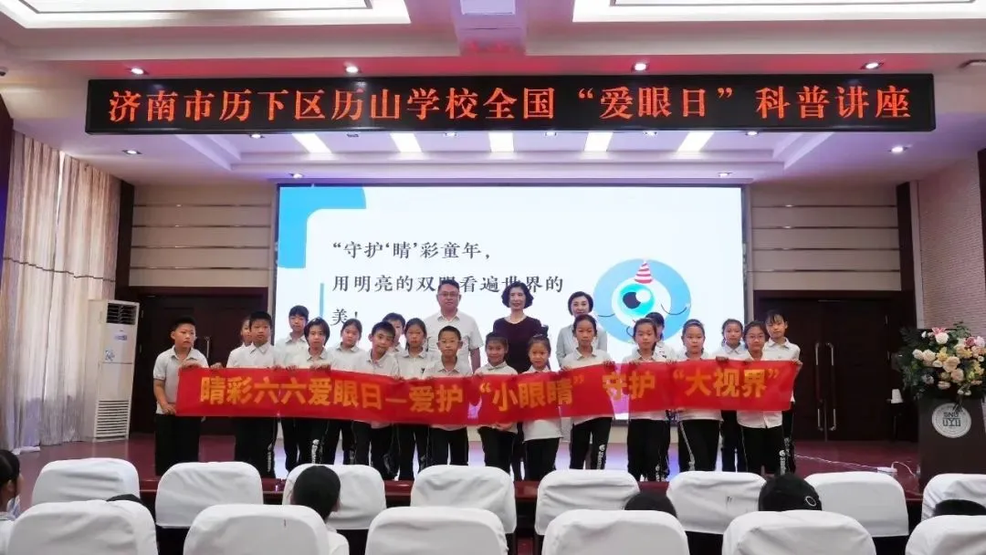 6月6日,第30个全国爱眼日来临之际,山东繁播乐施医疗科技公司科科学技术协会走进济南市历下区历山学校,开展主题为 “爱童护瞳,‘睛’彩校园” 的公益科普讲座活动,为孩子们送上一份特别的 “眼睛关爱礼”。历下区关工委副主任刘岩、历山学校校长辛吉荣、山东繁播乐施医疗科技公司科协主席徐萌等参加活动。